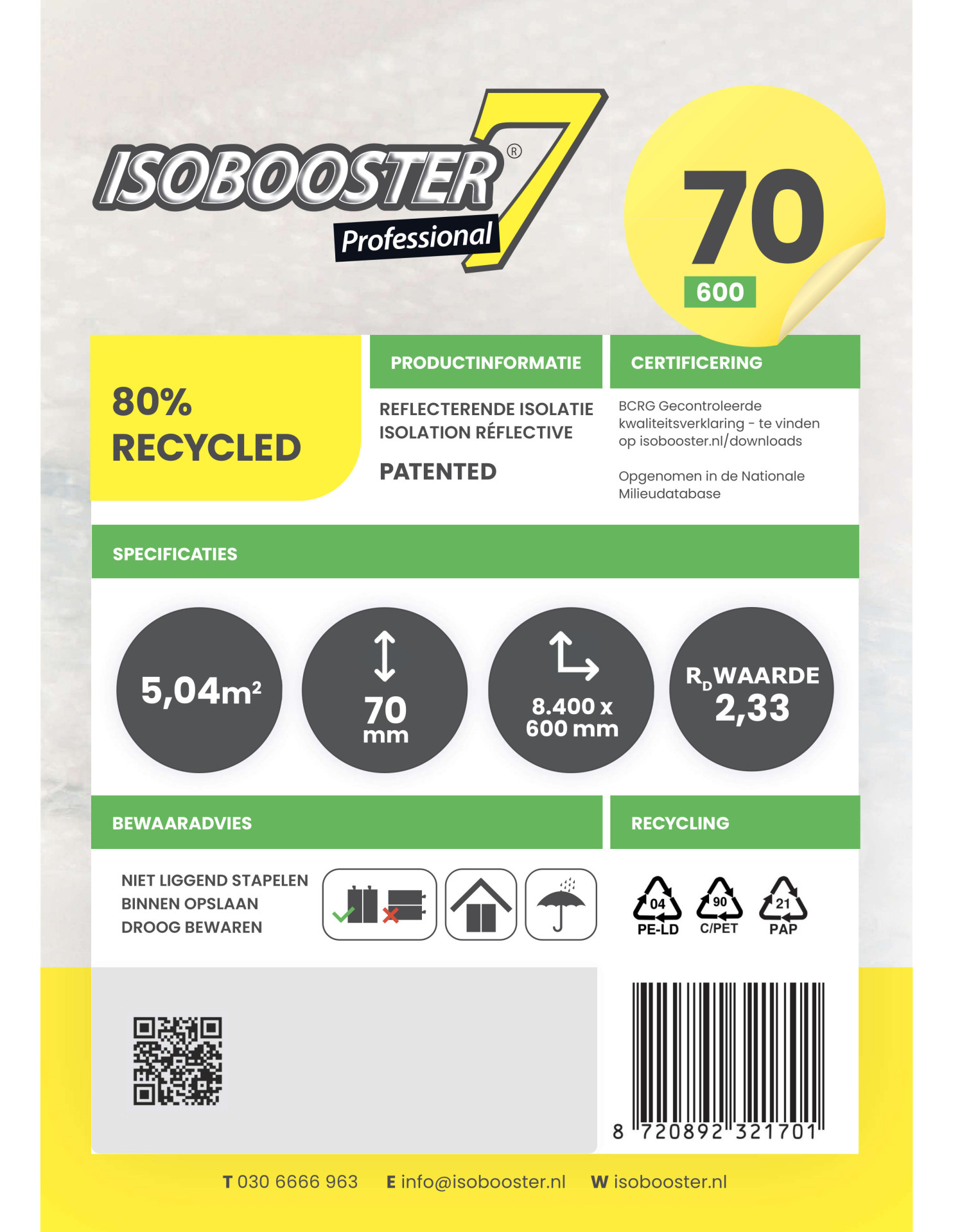 Verhoog het comfort en de energieprestatie van uw projecten met het Isobooster Professional isolatiesysteem. Deze innovatieve, meerlaagse isolatie is vervaardigd uit milieuvriendelijke, gerecyclede materialen en biedt een unieke meervoudige werking.